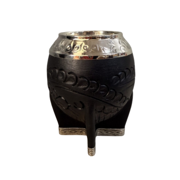 La base y las patas, también en alpaca, brindan estabilidad y un acabado elegante que realza todo el conjunto. Es un mate robusto, cómodo en mano y con una estética clásica y sofisticada, ideal para quienes buscan una pieza premium tanto para uso diario como para regalo.